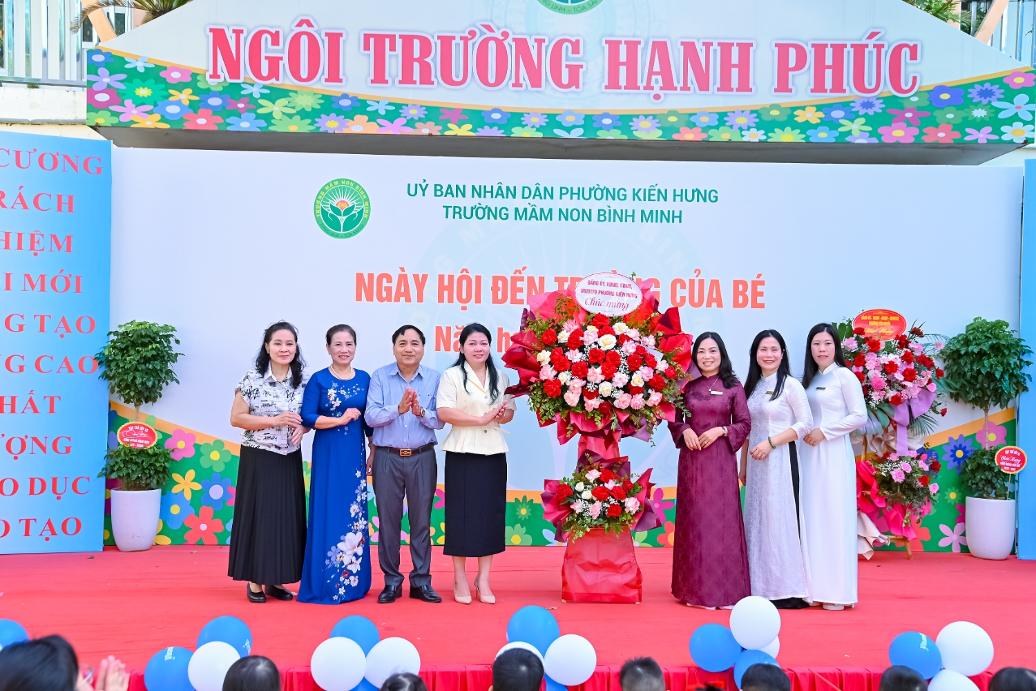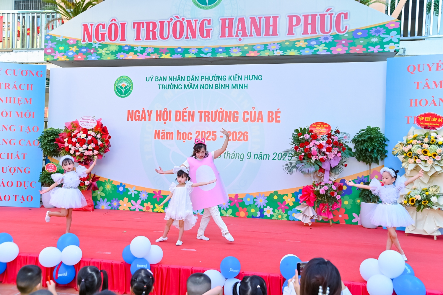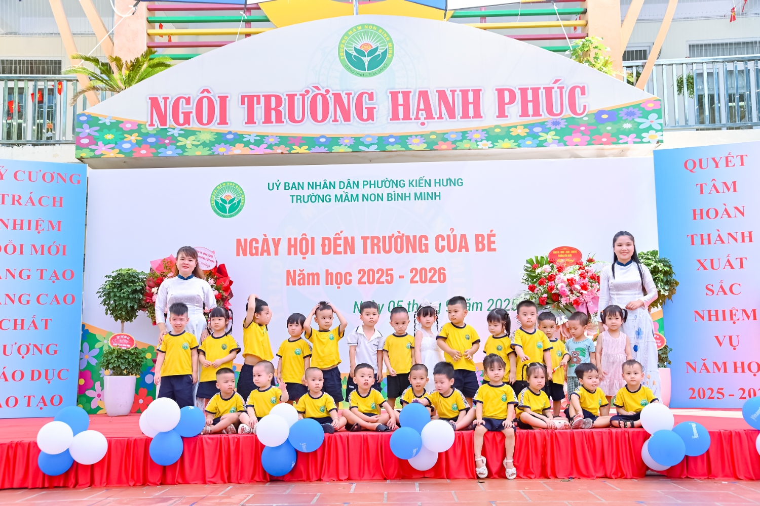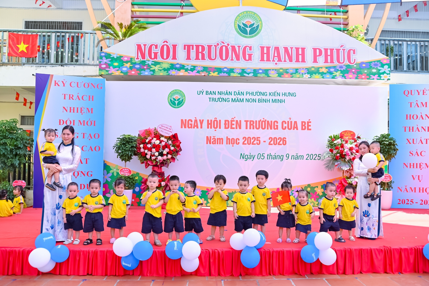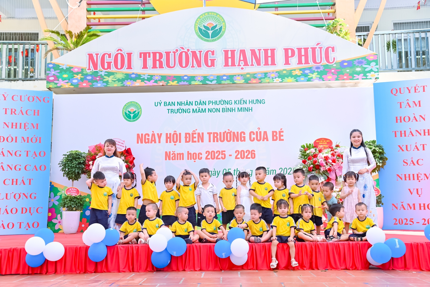 Sáng ngày 5/9/2025, trường Mầm non Bình Minh, phường Kiến Hưng, thành phố Hà Nội đã long trọng tổ chức lễ khai giảng năm học mới 2025 – 2026 trong không khí rộn ràng, hân hoan của thầy cô, phụ huynh và các em nhỏ. Sân trường được trang hoàng rực rỡ với cờ hoa, bóng bay và những tiết mục văn nghệ ngộ nghĩnh, đáng yêu do chính các bé biểu diễn. Buổi lễ diễn ra ấm áp, trang trọng nhưng vẫn gần gũi, tạo cho các con một kỷ niệm đầu năm học thật vui tươi và tràn đầy hứng khởi. Năm học mới, tập thể cán bộ, giáo viên và học sinh trường Mầm non Bình Minh quyết tâm tiếp tục phấn đấu, xây dựng môi trường học tập an toàn, thân thiện, góp phần nâng cao chất lượng giáo dục, để mỗi ngày đến trường thực sự là một ngày vui.