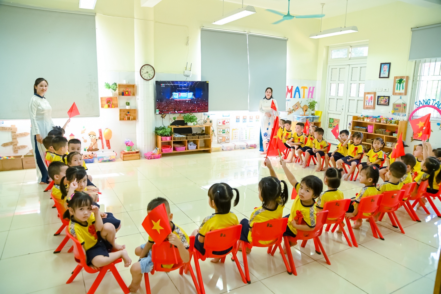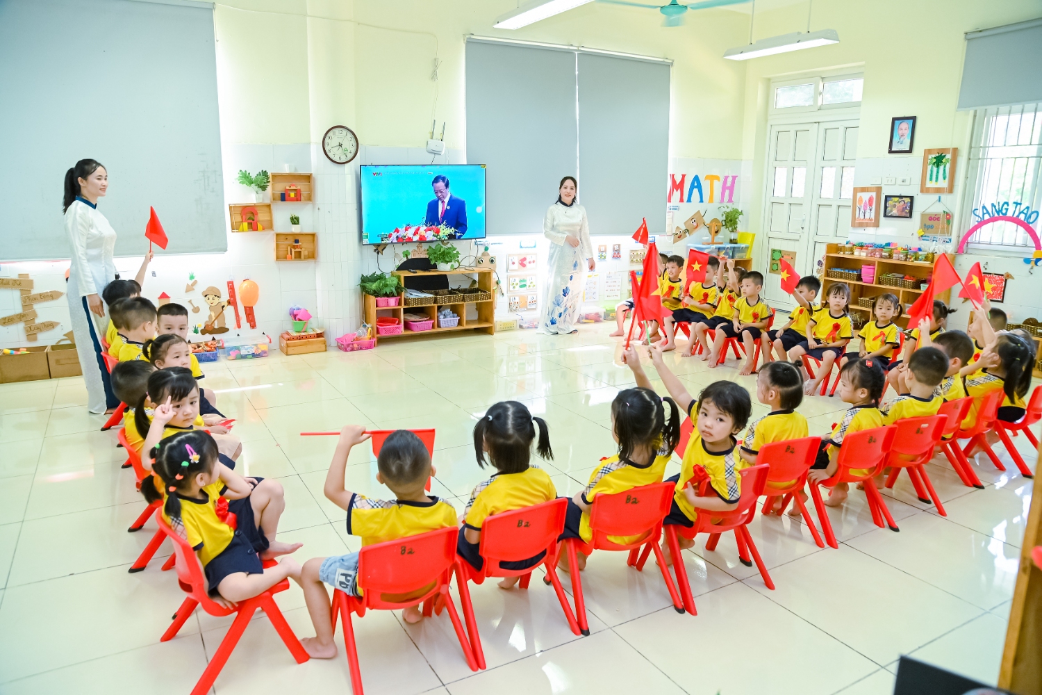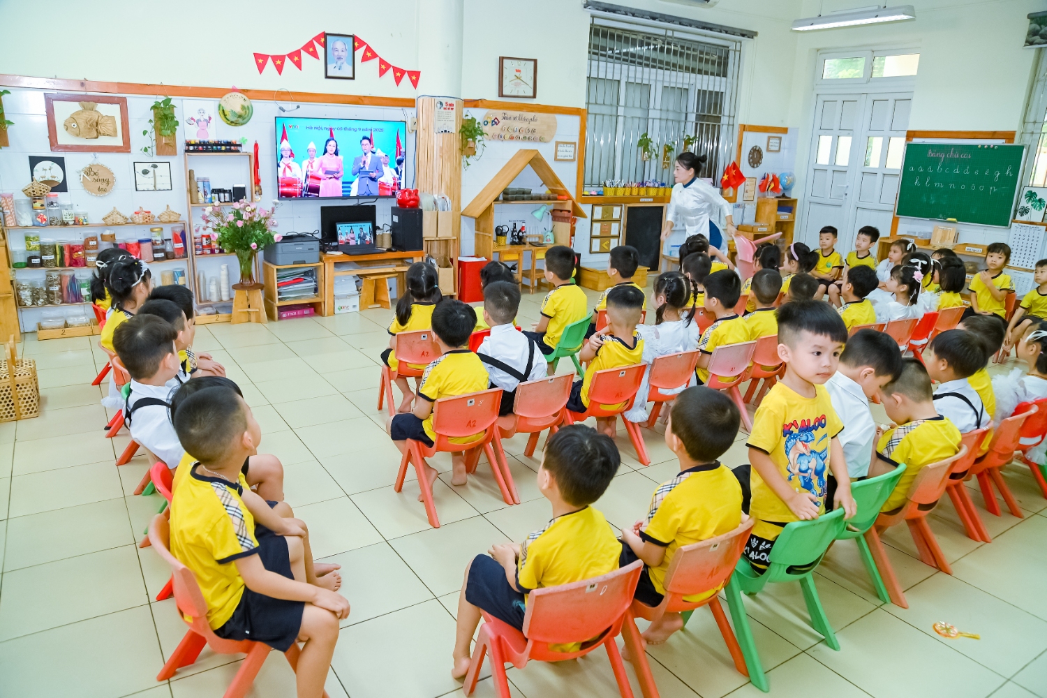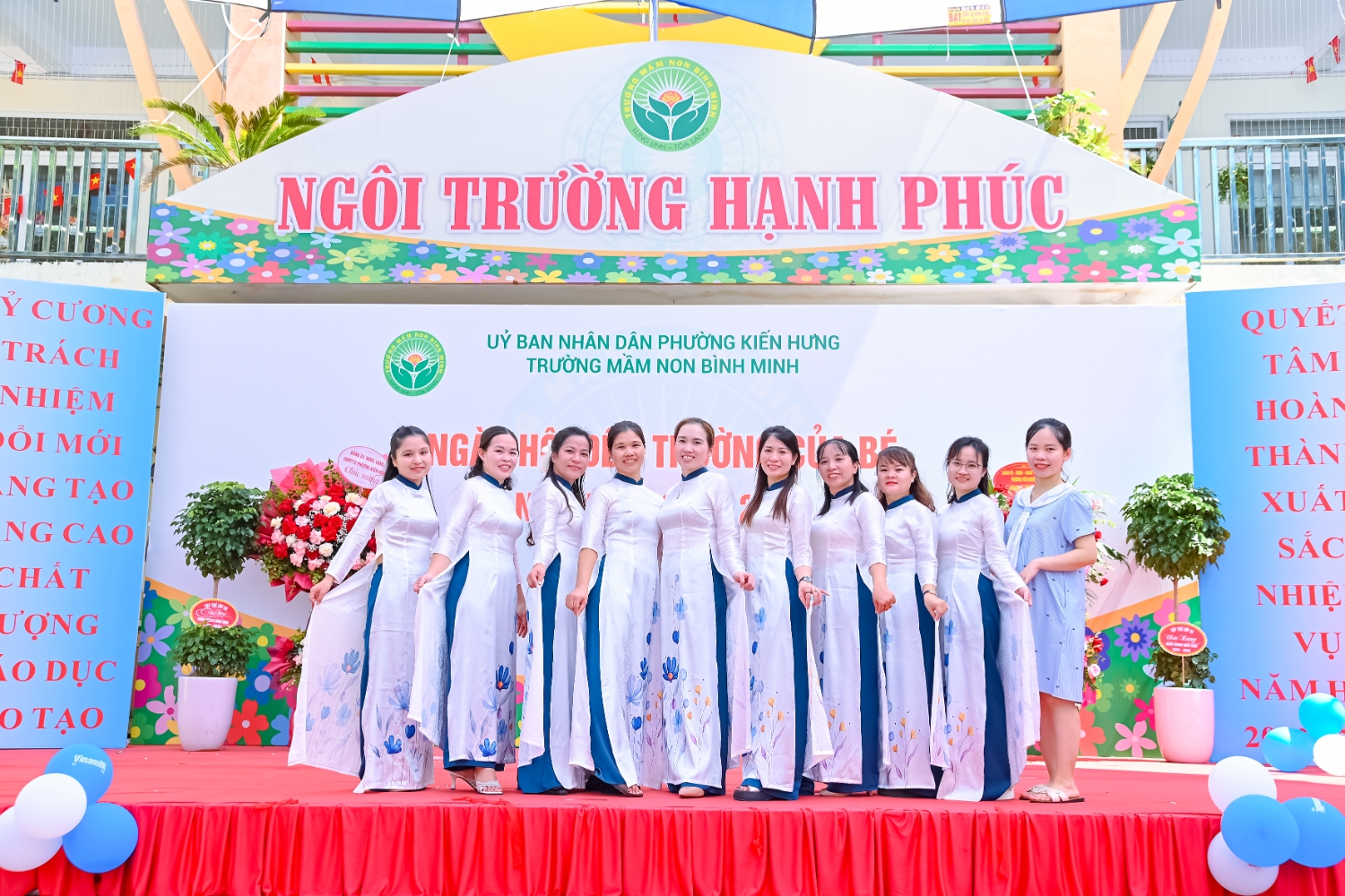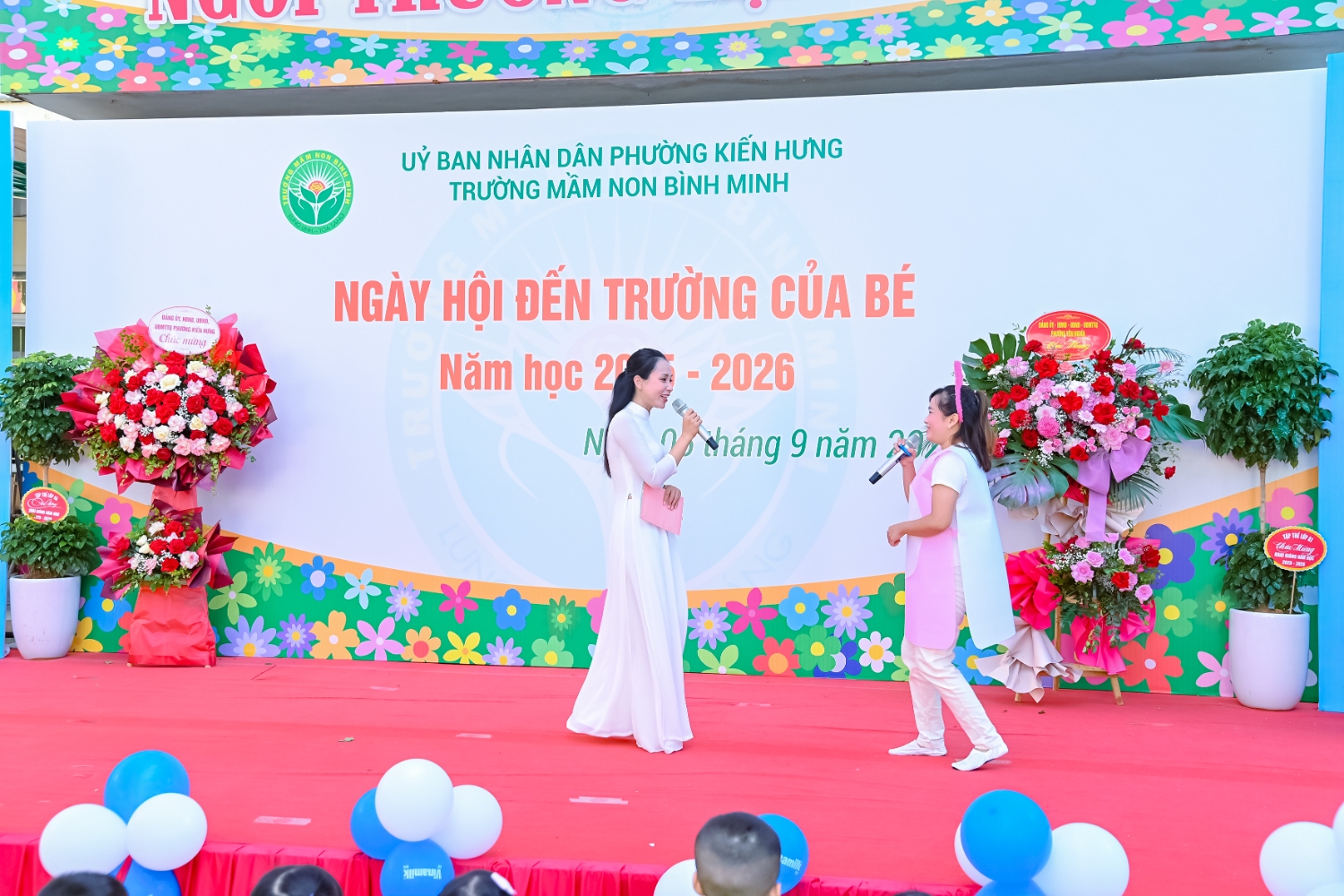 Sáng ngày 5/9/2025, trường Mầm non Bình Minh, phường Kiến Hưng, thành phố Hà Nội đã long trọng tổ chức lễ khai giảng năm học mới 2025 – 2026 trong không khí rộn ràng, hân hoan của thầy cô, phụ huynh và các em nhỏ. Sân trường được trang hoàng rực rỡ với cờ hoa, bóng bay và những tiết mục văn nghệ ngộ nghĩnh, đáng yêu do chính các bé biểu diễn. Buổi lễ diễn ra ấm áp, trang trọng nhưng vẫn gần gũi, tạo cho các con một kỷ niệm đầu năm học thật vui tươi và tràn đầy hứng khởi. Năm học mới, tập thể cán bộ, giáo viên và học sinh trường Mầm non Bình Minh quyết tâm tiếp tục phấn đấu, xây dựng môi trường học tập an toàn, thân thiện, góp phần nâng cao chất lượng giáo dục, để mỗi ngày đến trường thực sự là một ngày vui.