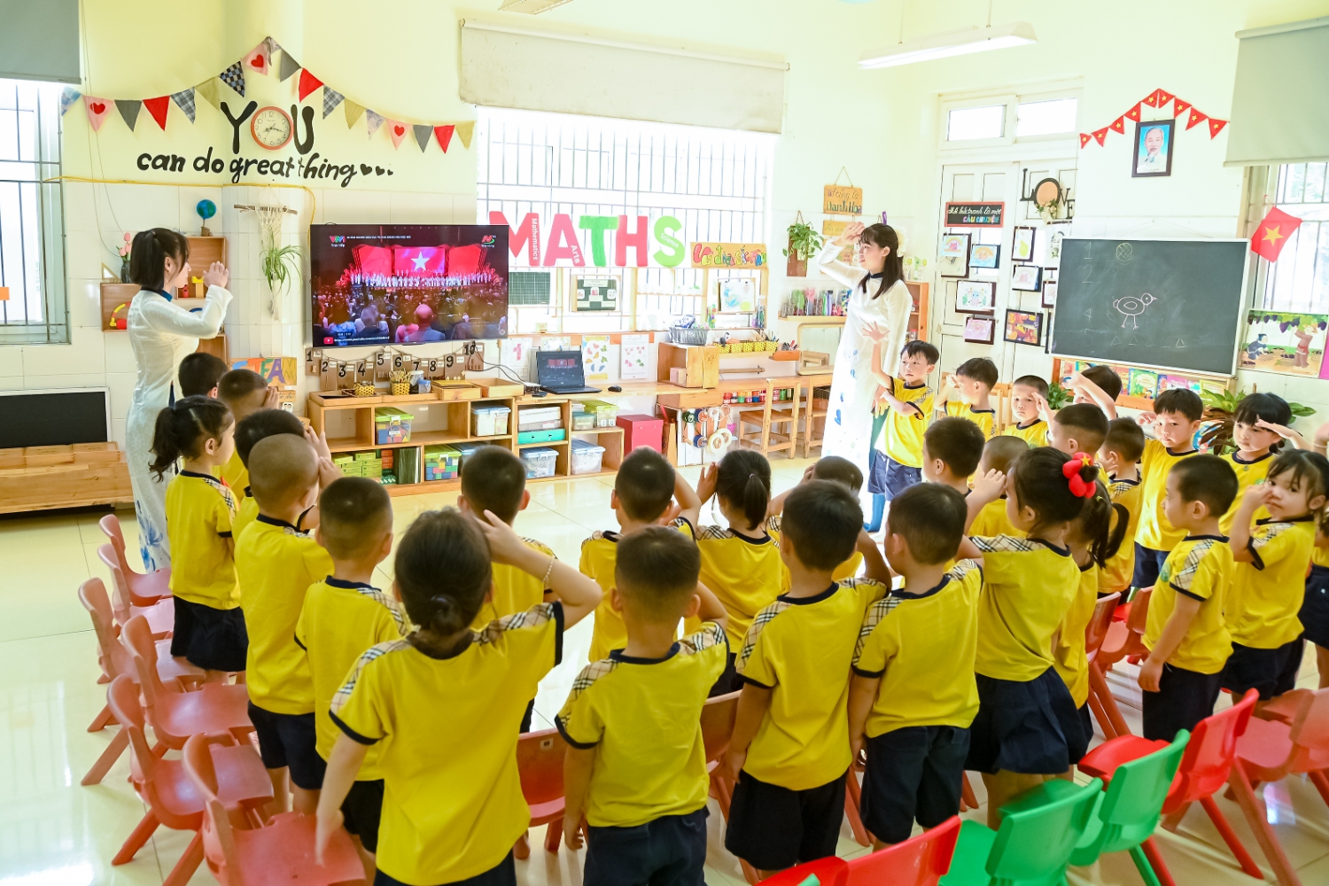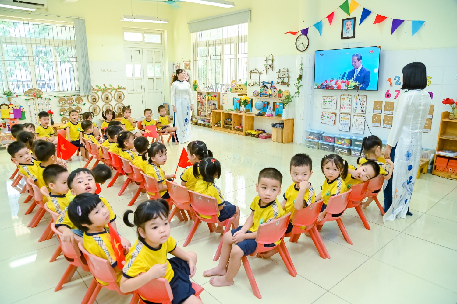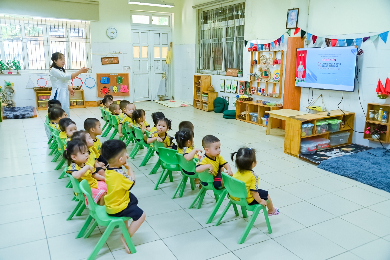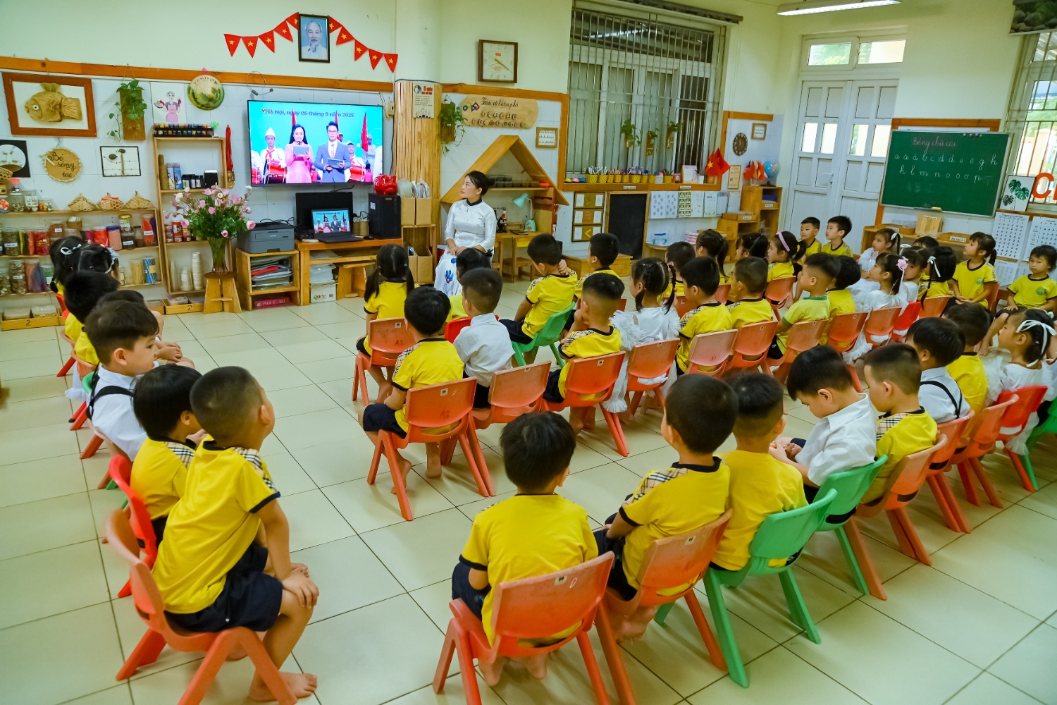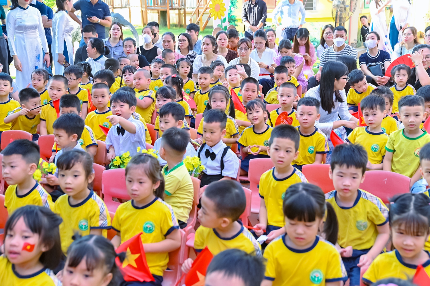 Sáng ngày 5/9/2025, trường Mầm non Bình Minh, phường Kiến Hưng, thành phố Hà Nội đã long trọng tổ chức lễ khai giảng năm học mới 2025 – 2026 trong không khí rộn ràng, hân hoan của thầy cô, phụ huynh và các em nhỏ. Sân trường được trang hoàng rực rỡ với cờ hoa, bóng bay và những tiết mục văn nghệ ngộ nghĩnh, đáng yêu do chính các bé biểu diễn. Buổi lễ diễn ra ấm áp, trang trọng nhưng vẫn gần gũi, tạo cho các con một kỷ niệm đầu năm học thật vui tươi và tràn đầy hứng khởi. Năm học mới, tập thể cán bộ, giáo viên và học sinh trường Mầm non Bình Minh quyết tâm tiếp tục phấn đấu, xây dựng môi trường học tập an toàn, thân thiện, góp phần nâng cao chất lượng giáo dục, để mỗi ngày đến trường thực sự là một ngày vui.