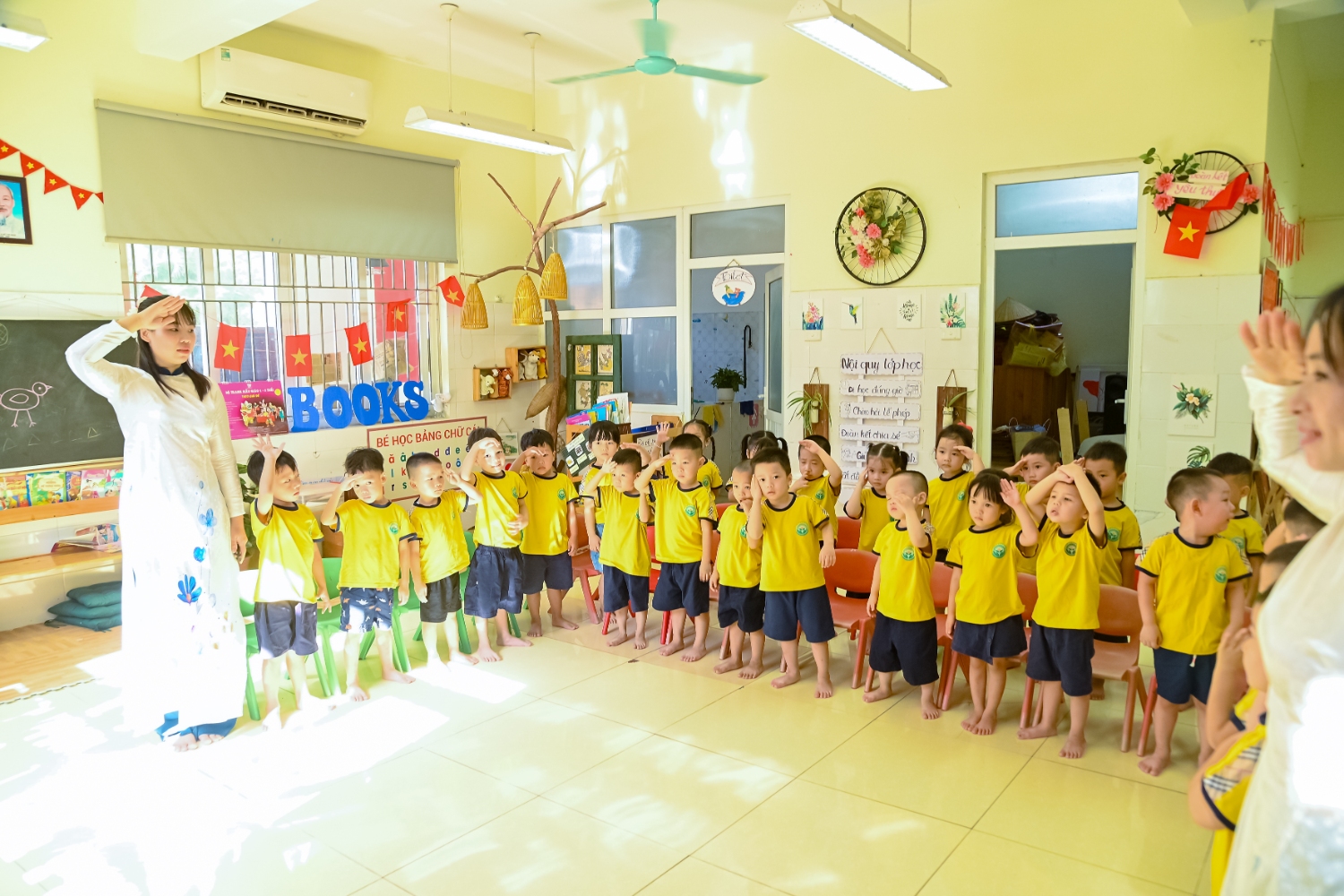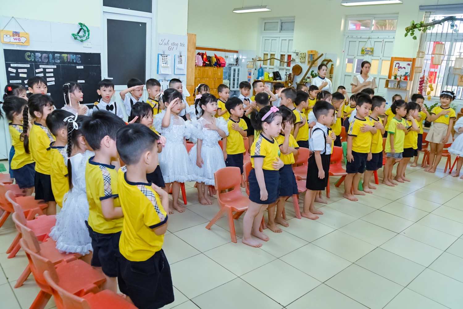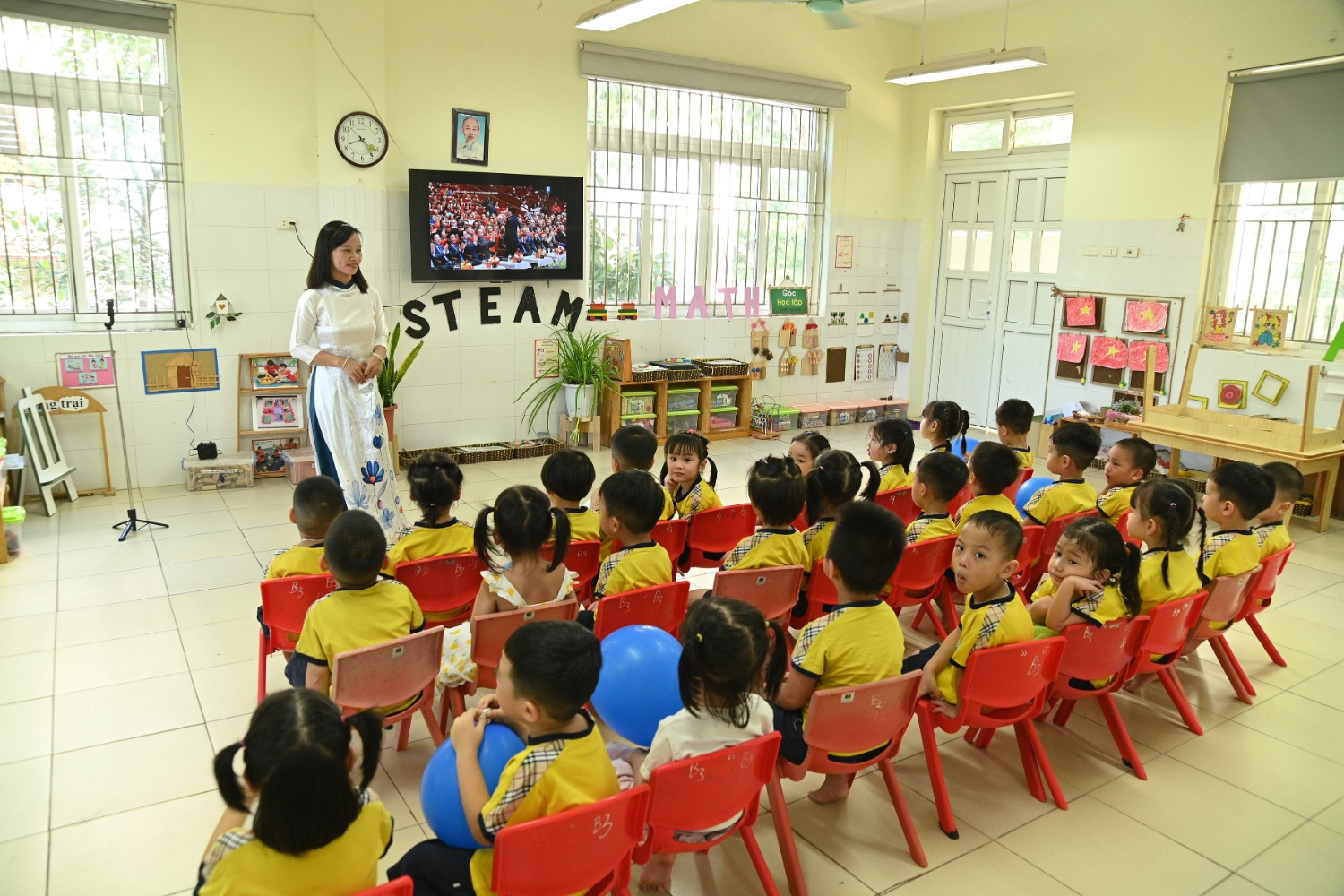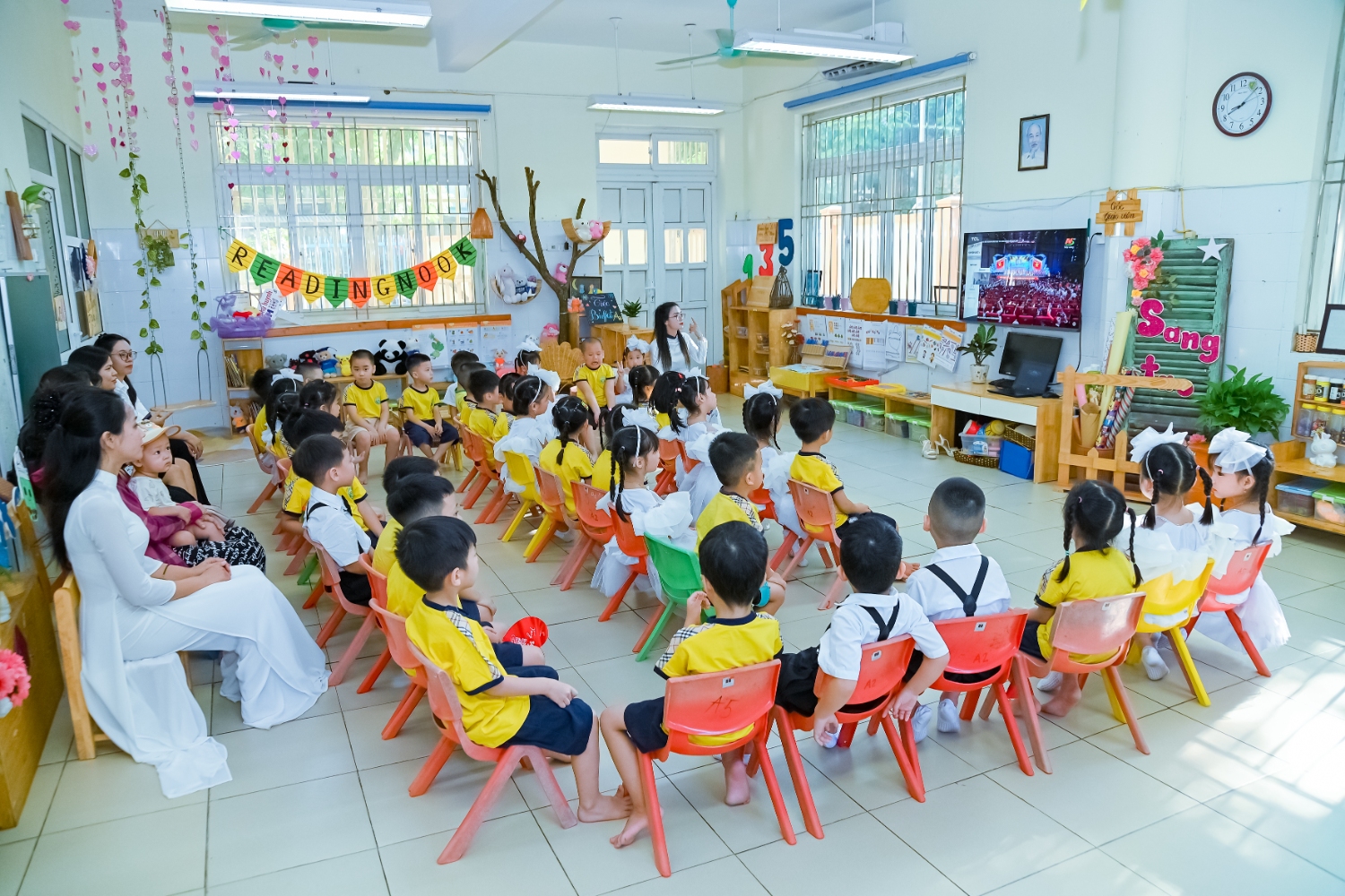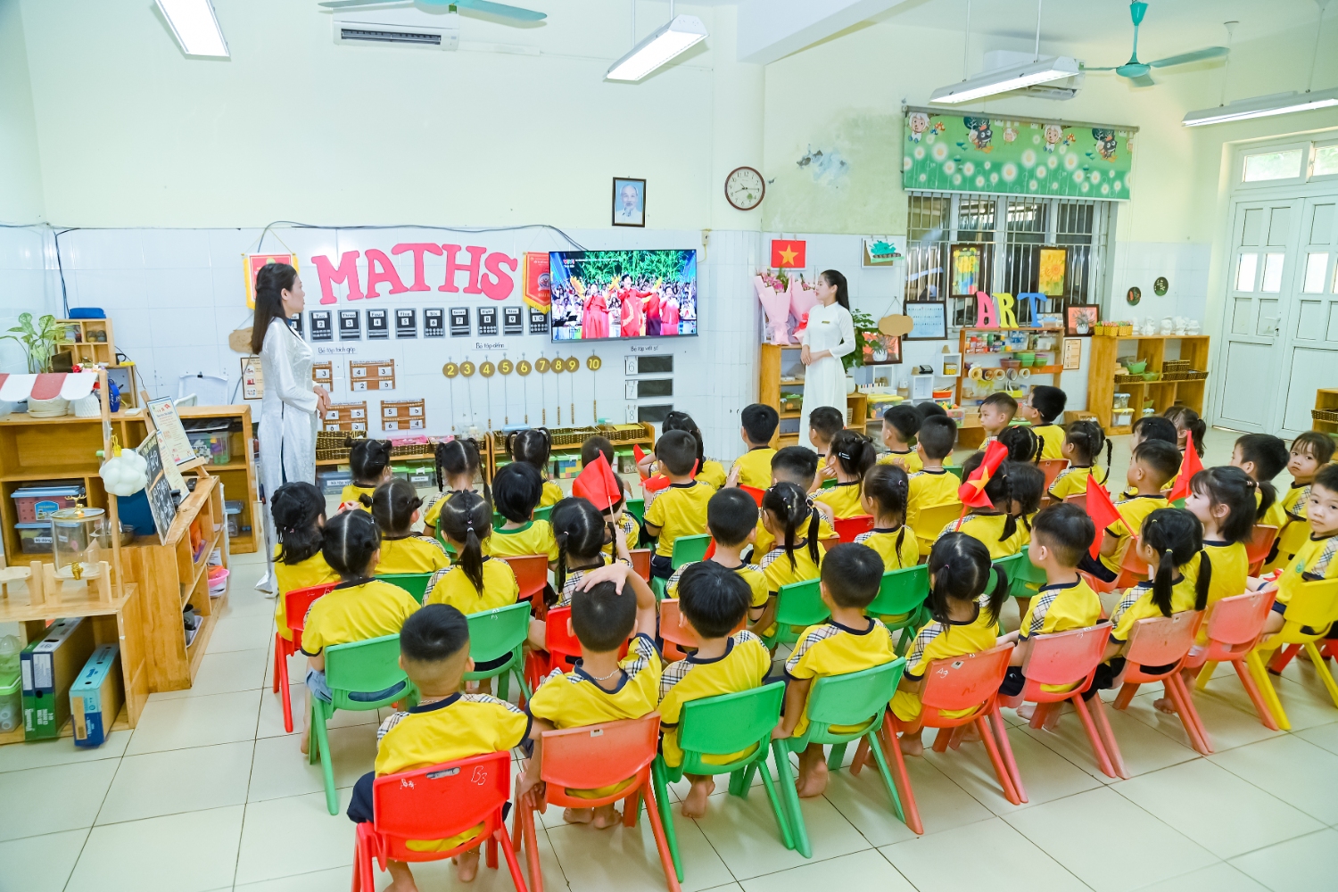 Sáng ngày 5/9/2025, trường Mầm non Bình Minh, phường Kiến Hưng, thành phố Hà Nội đã long trọng tổ chức lễ khai giảng năm học mới 2025 – 2026 trong không khí rộn ràng, hân hoan của thầy cô, phụ huynh và các em nhỏ. Sân trường được trang hoàng rực rỡ với cờ hoa, bóng bay và những tiết mục văn nghệ ngộ nghĩnh, đáng yêu do chính các bé biểu diễn. Buổi lễ diễn ra ấm áp, trang trọng nhưng vẫn gần gũi, tạo cho các con một kỷ niệm đầu năm học thật vui tươi và tràn đầy hứng khởi. Năm học mới, tập thể cán bộ, giáo viên và học sinh trường Mầm non Bình Minh quyết tâm tiếp tục phấn đấu, xây dựng môi trường học tập an toàn, thân thiện, góp phần nâng cao chất lượng giáo dục, để mỗi ngày đến trường thực sự là một ngày vui.