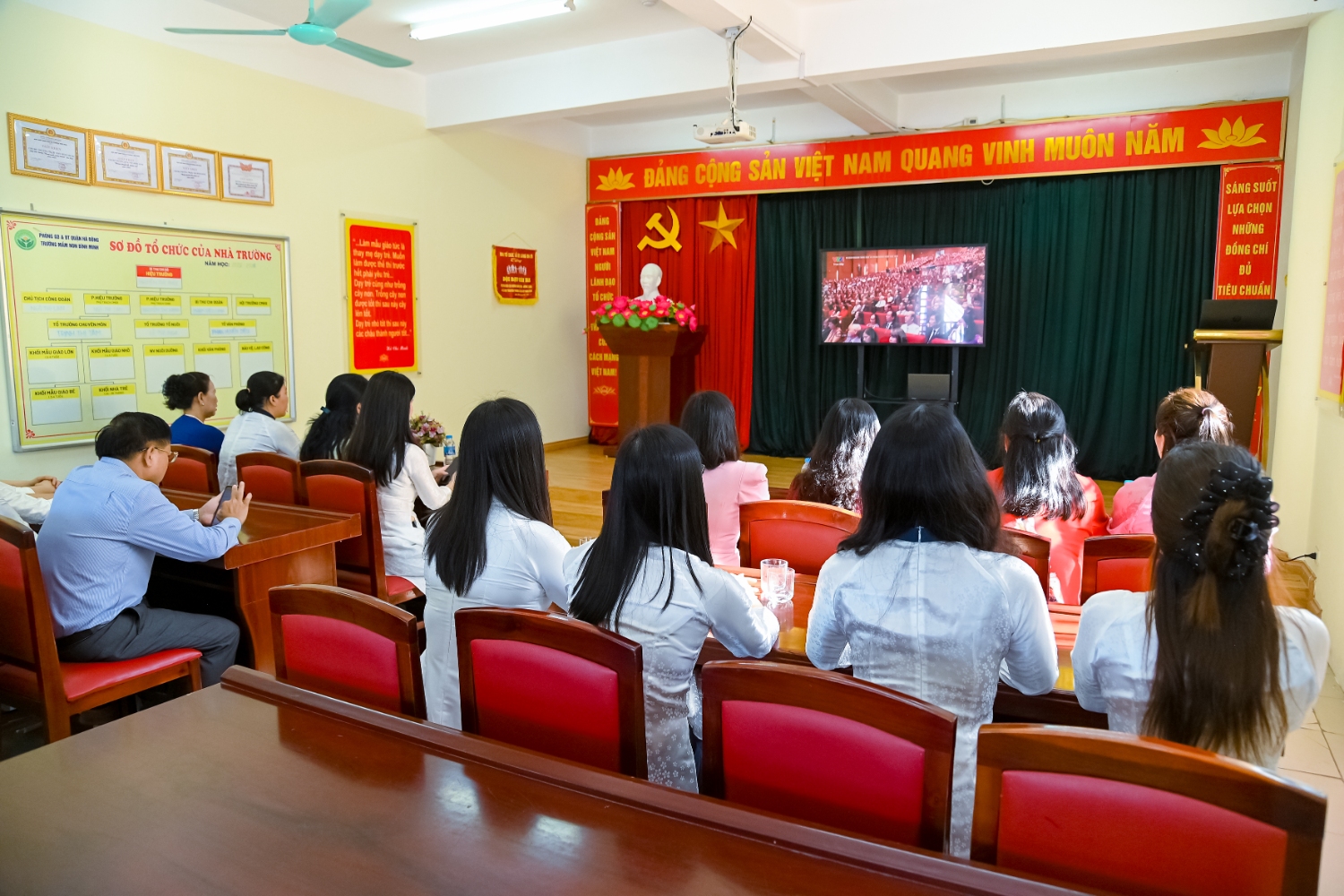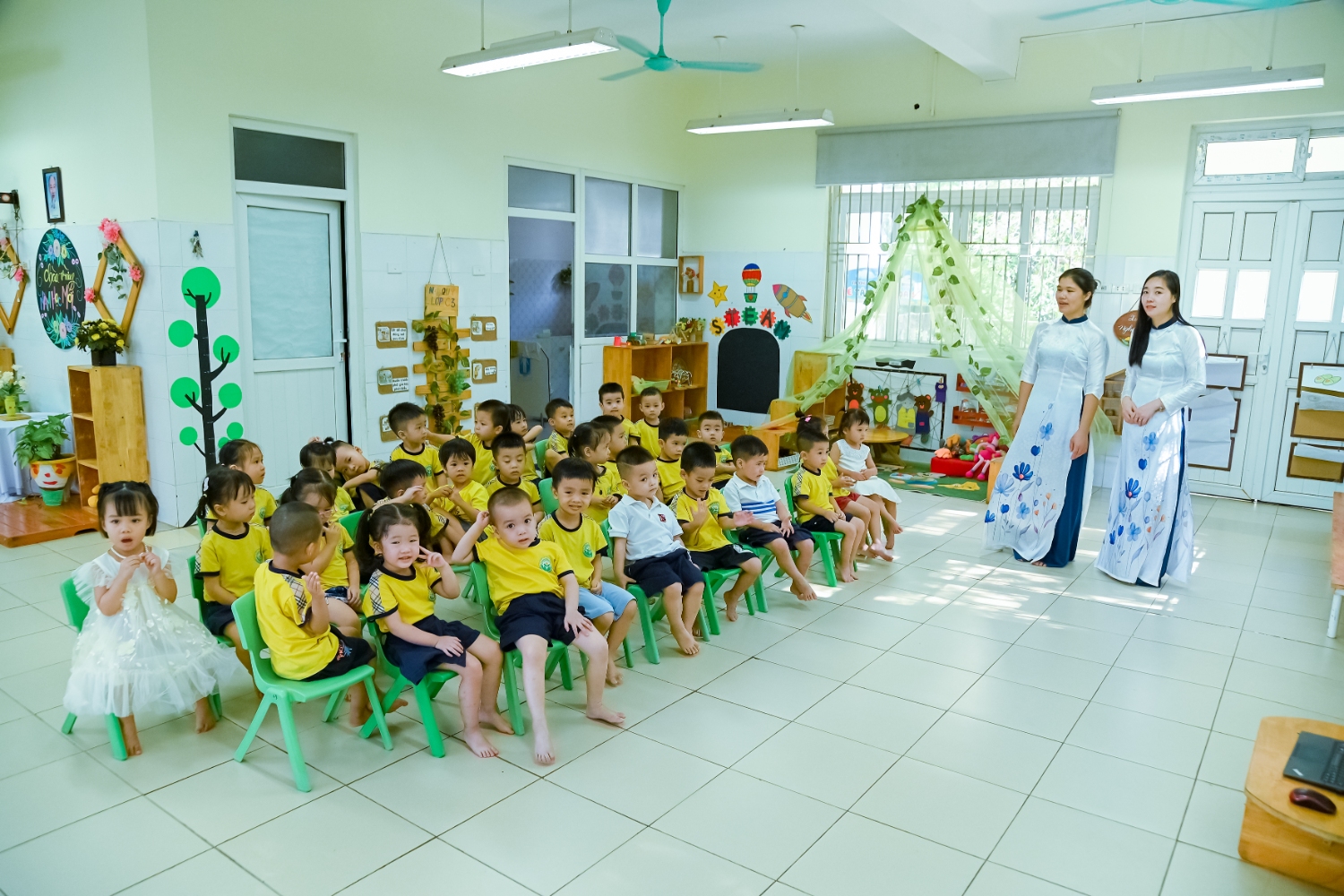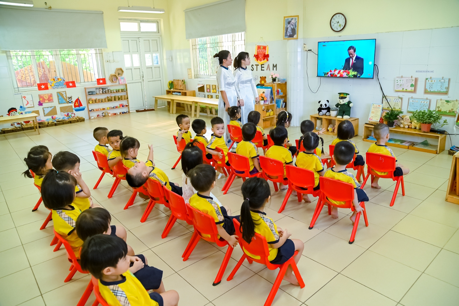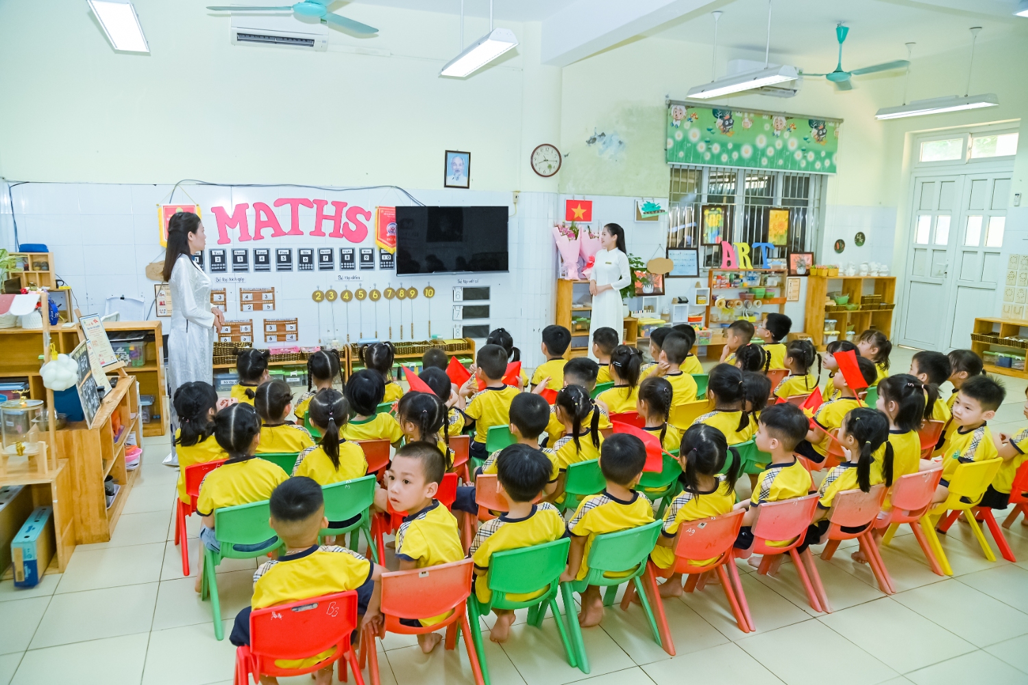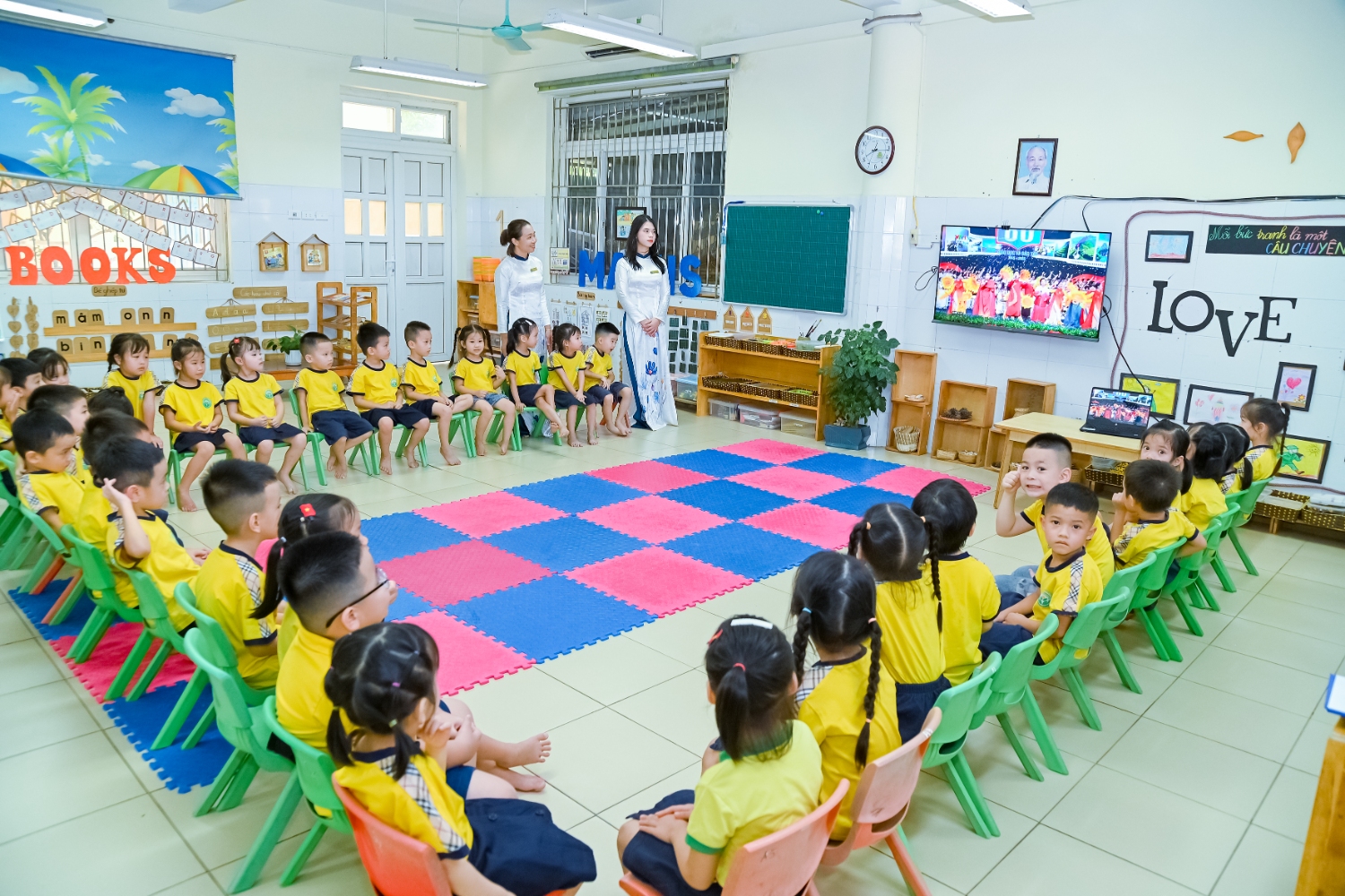 Sáng ngày 5/9/2025, trường Mầm non Bình Minh, phường Kiến Hưng, thành phố Hà Nội đã long trọng tổ chức lễ khai giảng năm học mới 2025 – 2026 trong không khí rộn ràng, hân hoan của thầy cô, phụ huynh và các em nhỏ. Sân trường được trang hoàng rực rỡ với cờ hoa, bóng bay và những tiết mục văn nghệ ngộ nghĩnh, đáng yêu do chính các bé biểu diễn. Buổi lễ diễn ra ấm áp, trang trọng nhưng vẫn gần gũi, tạo cho các con một kỷ niệm đầu năm học thật vui tươi và tràn đầy hứng khởi. Năm học mới, tập thể cán bộ, giáo viên và học sinh trường Mầm non Bình Minh quyết tâm tiếp tục phấn đấu, xây dựng môi trường học tập an toàn, thân thiện, góp phần nâng cao chất lượng giáo dục, để mỗi ngày đến trường thực sự là một ngày vui.