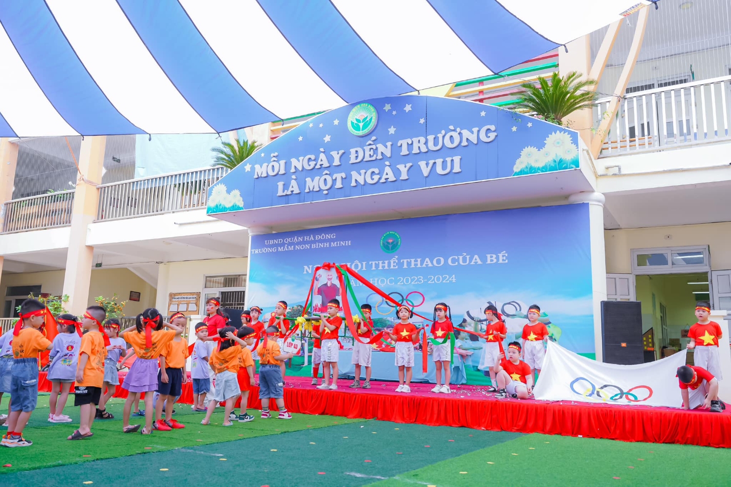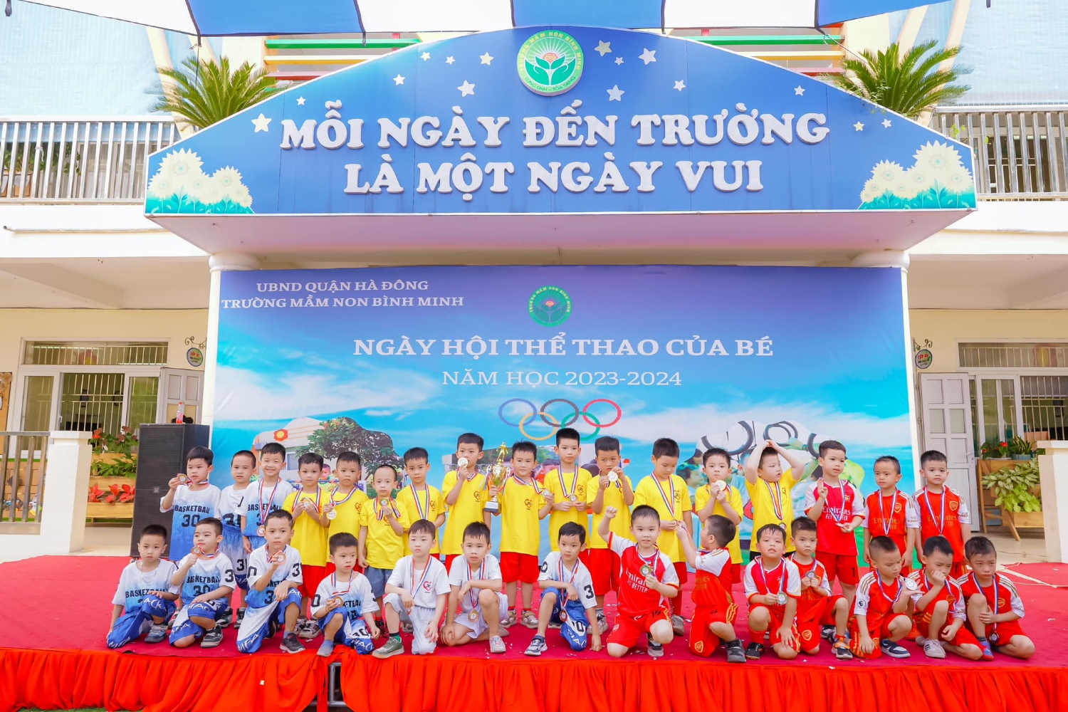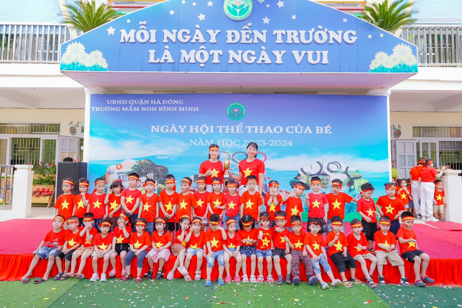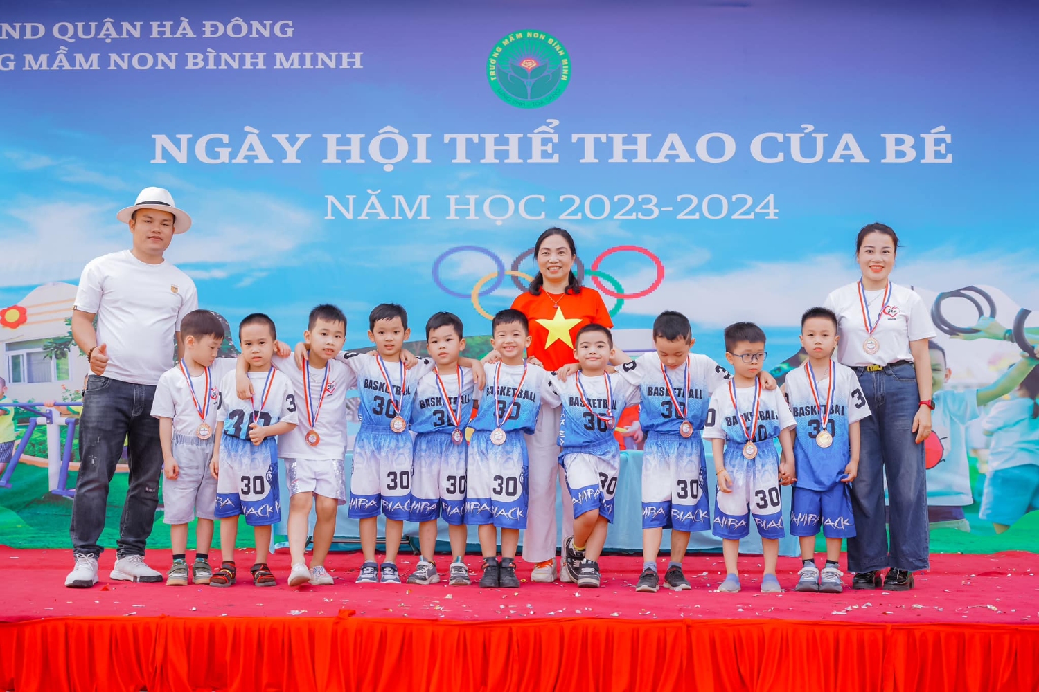Ngày 12/4, Trường Mầm non Bình Minh (Hà Đông, Hà Nội) đã tổ chức chương trình "Ngày hội thể thao của bé" với sự tham gia của đông đảo học sinh, phụ huynh và giáo viên nhà trường.