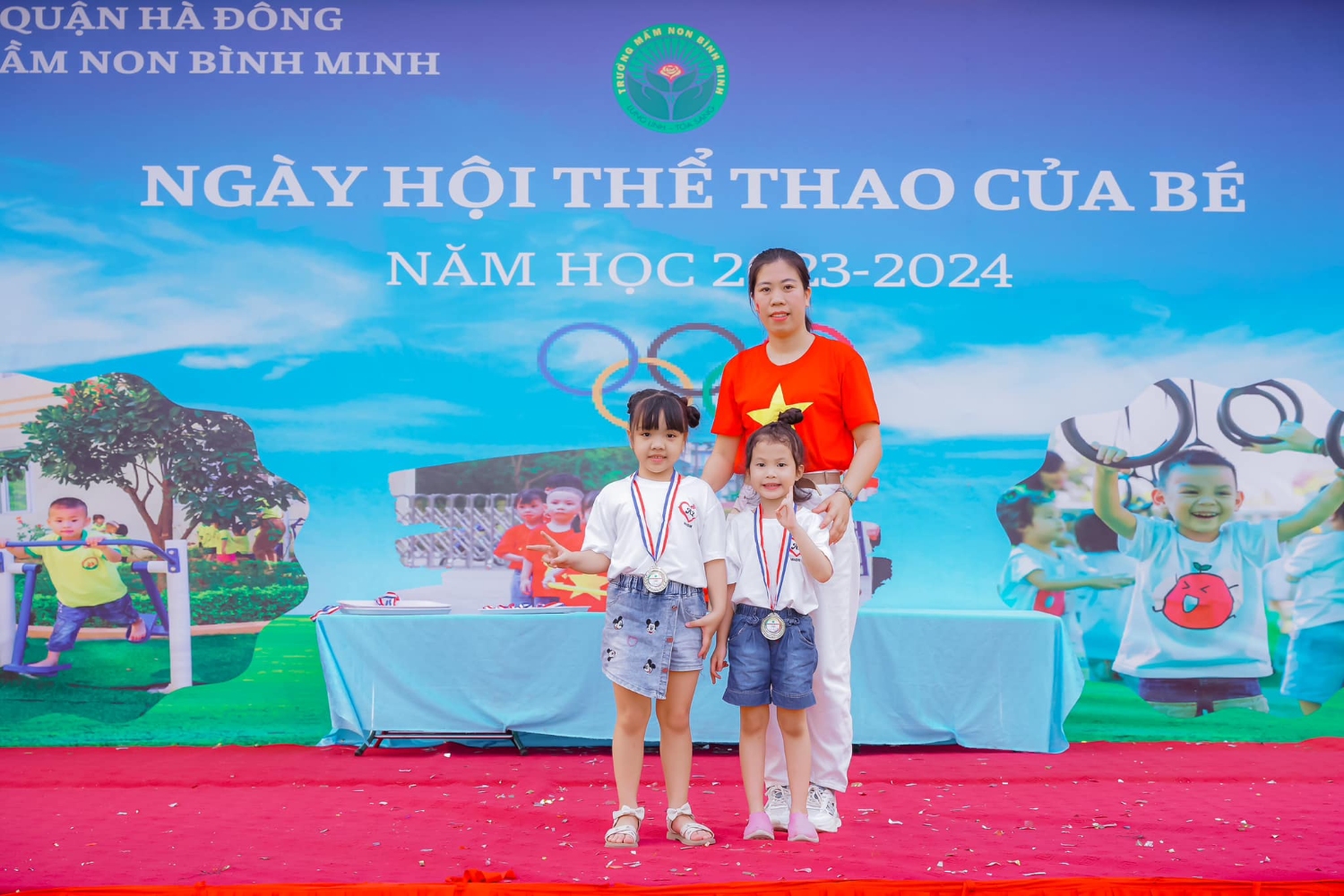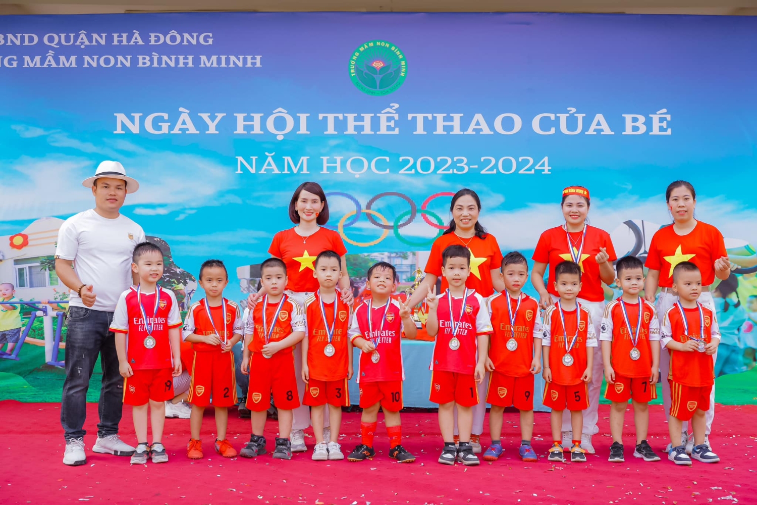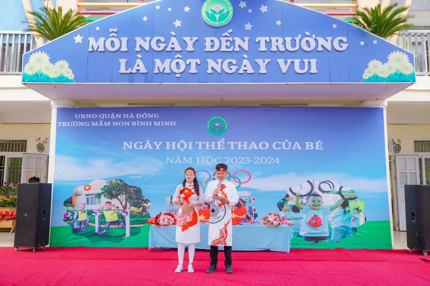 Ngày 12/4, Trường Mầm non Bình Minh (Hà Đông, Hà Nội) đã tổ chức chương trình "Ngày hội thể thao của bé" với sự tham gia của đông đảo học sinh, phụ huynh và giáo viên nhà trường.