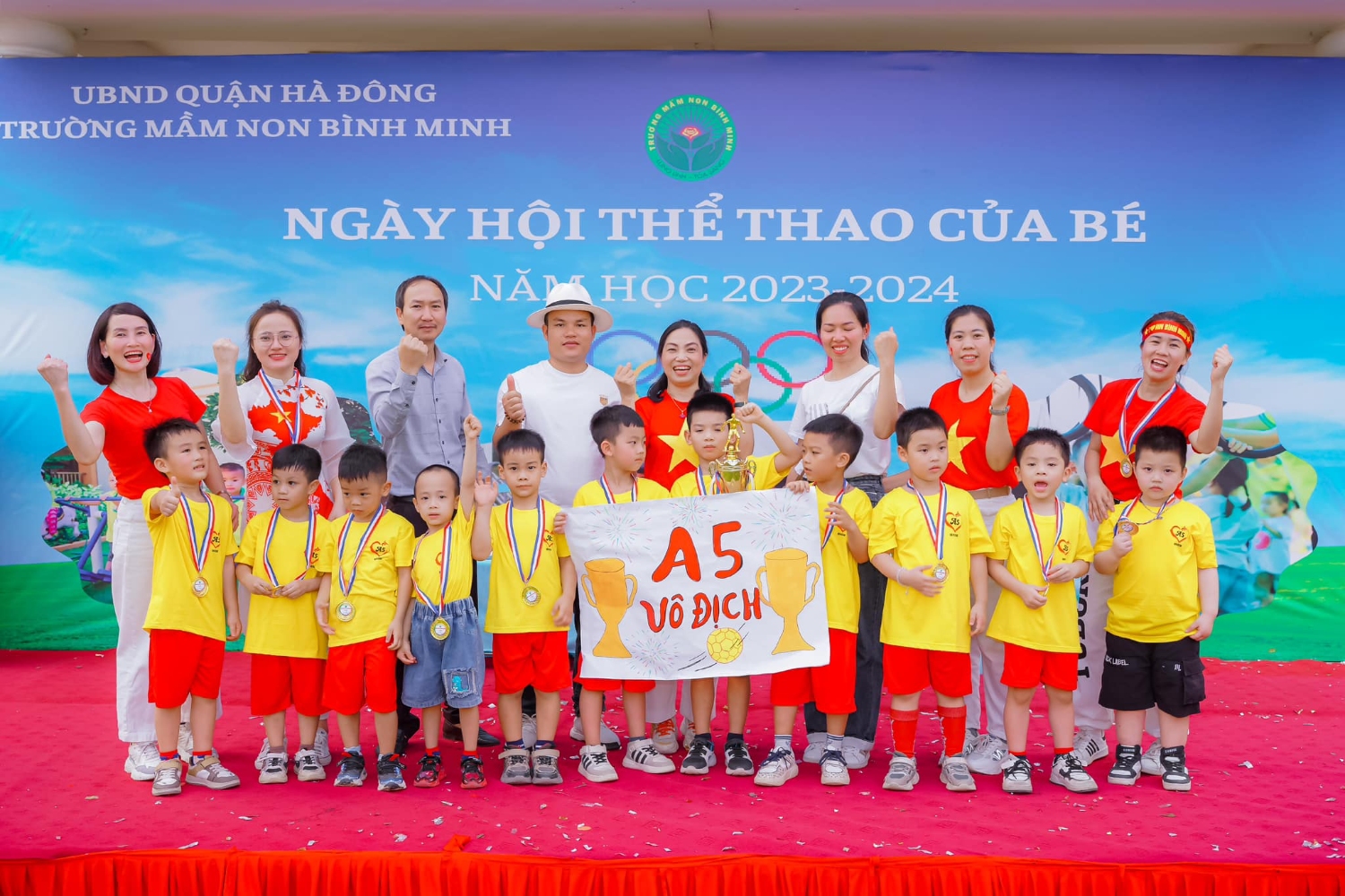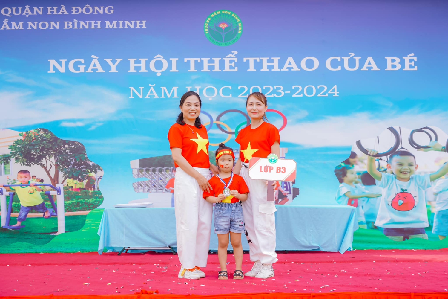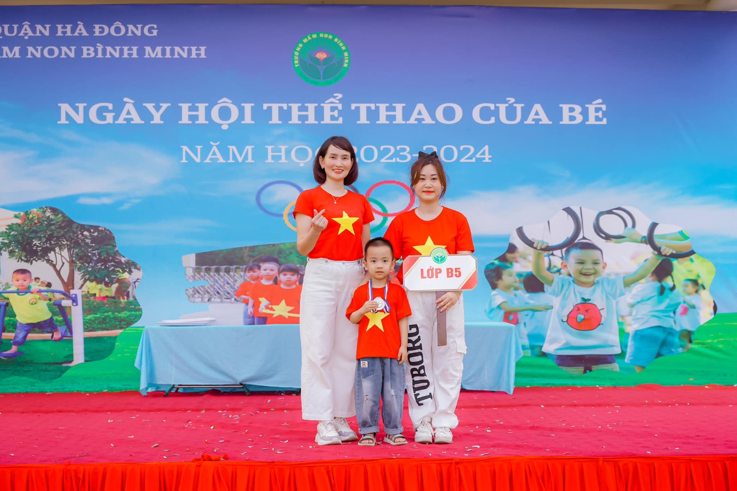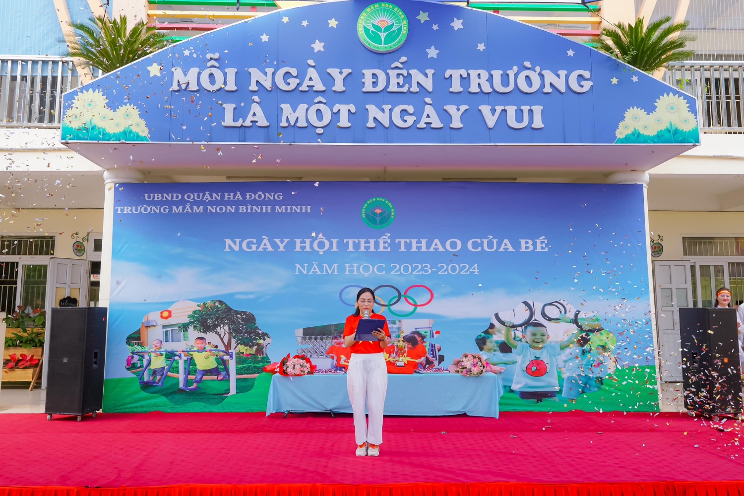 Ngày 12/4, Trường Mầm non Bình Minh (Hà Đông, Hà Nội) đã tổ chức chương trình "Ngày hội thể thao của bé" với sự tham gia của đông đảo học sinh, phụ huynh và giáo viên nhà trường.