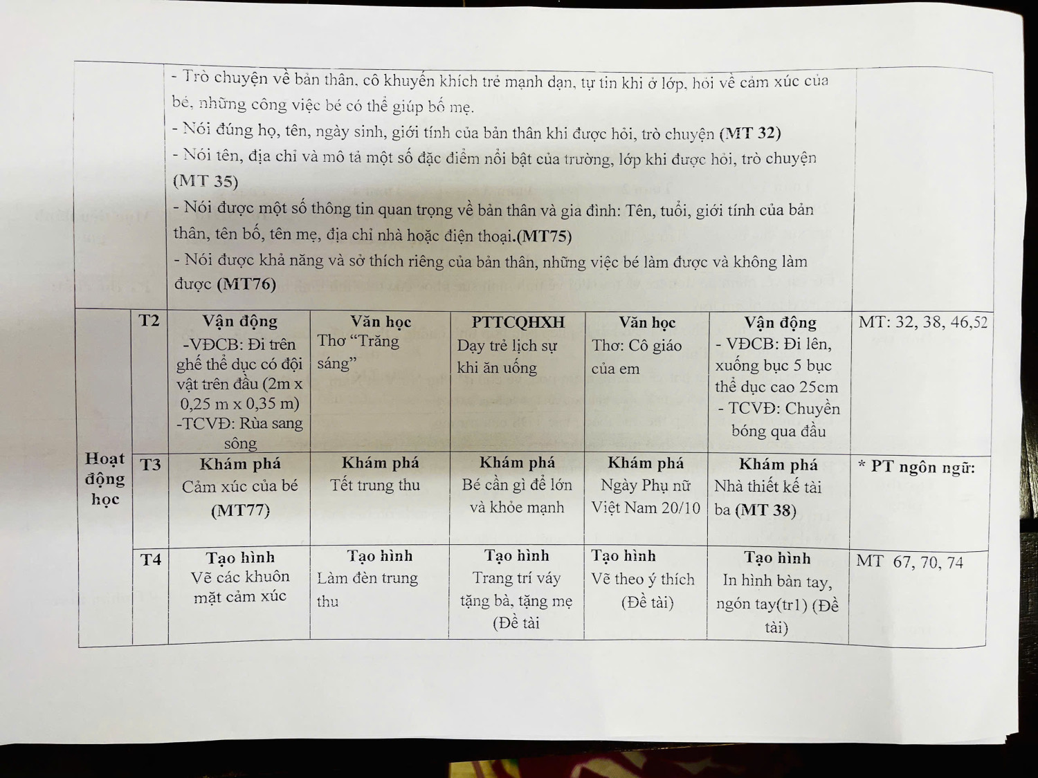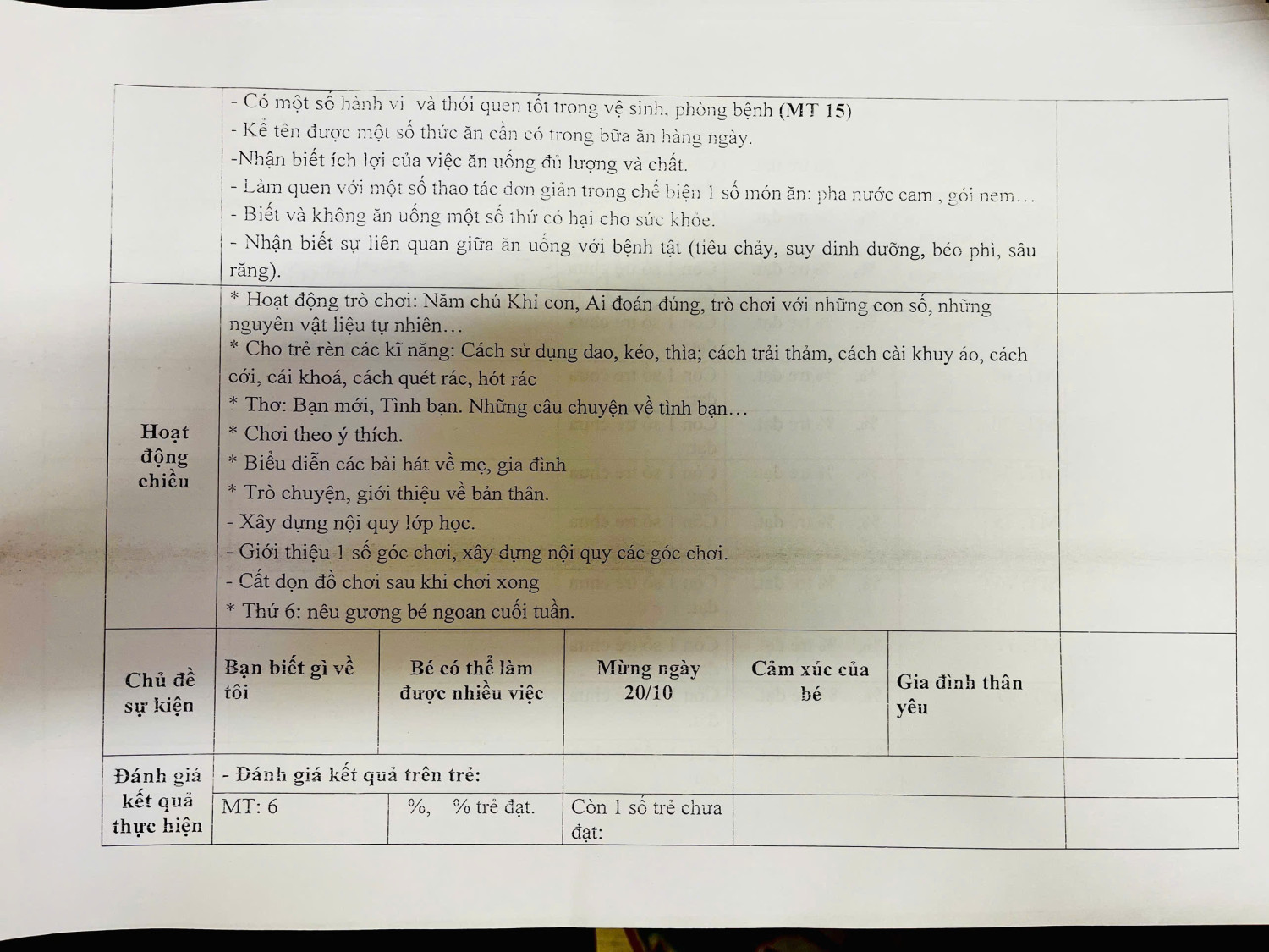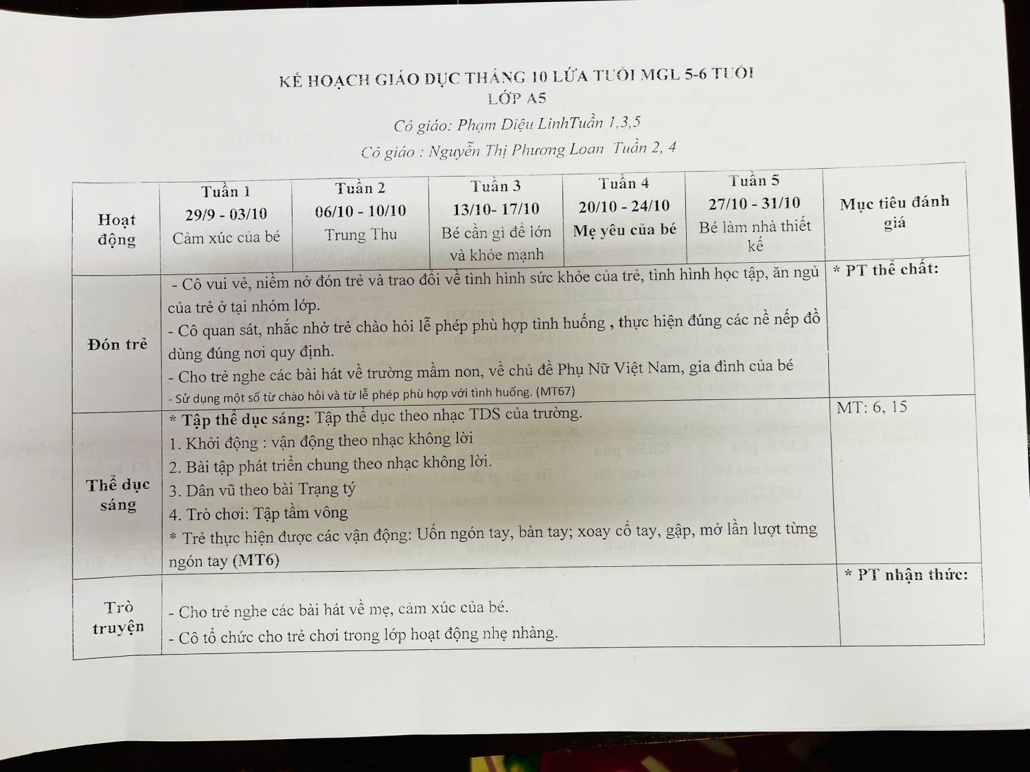 KẾ HOẠCH GD THÁNG 10 LỚP A5