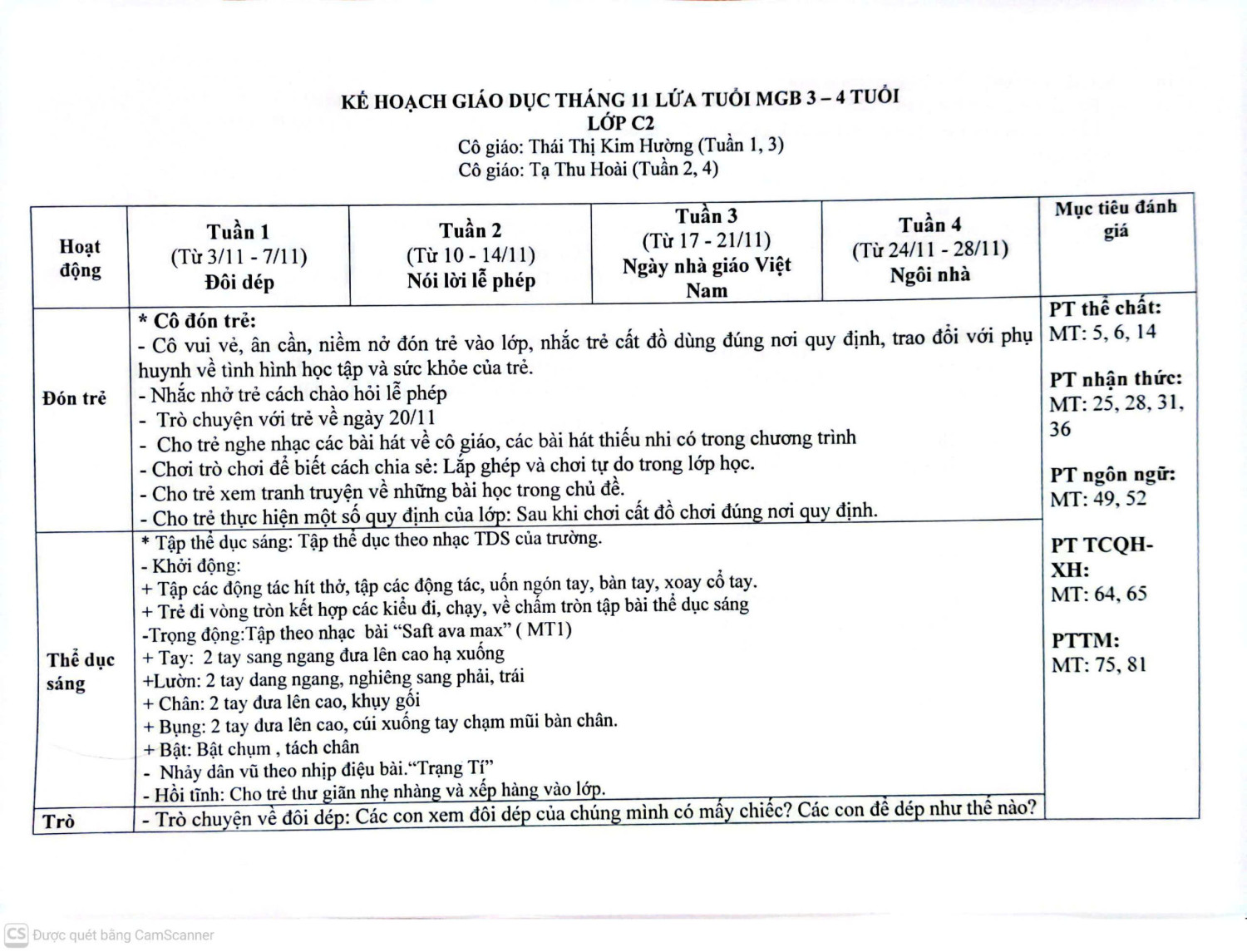 KẾ HOẠCH GIÁO DỤC THÁNG 11 LỚP C2