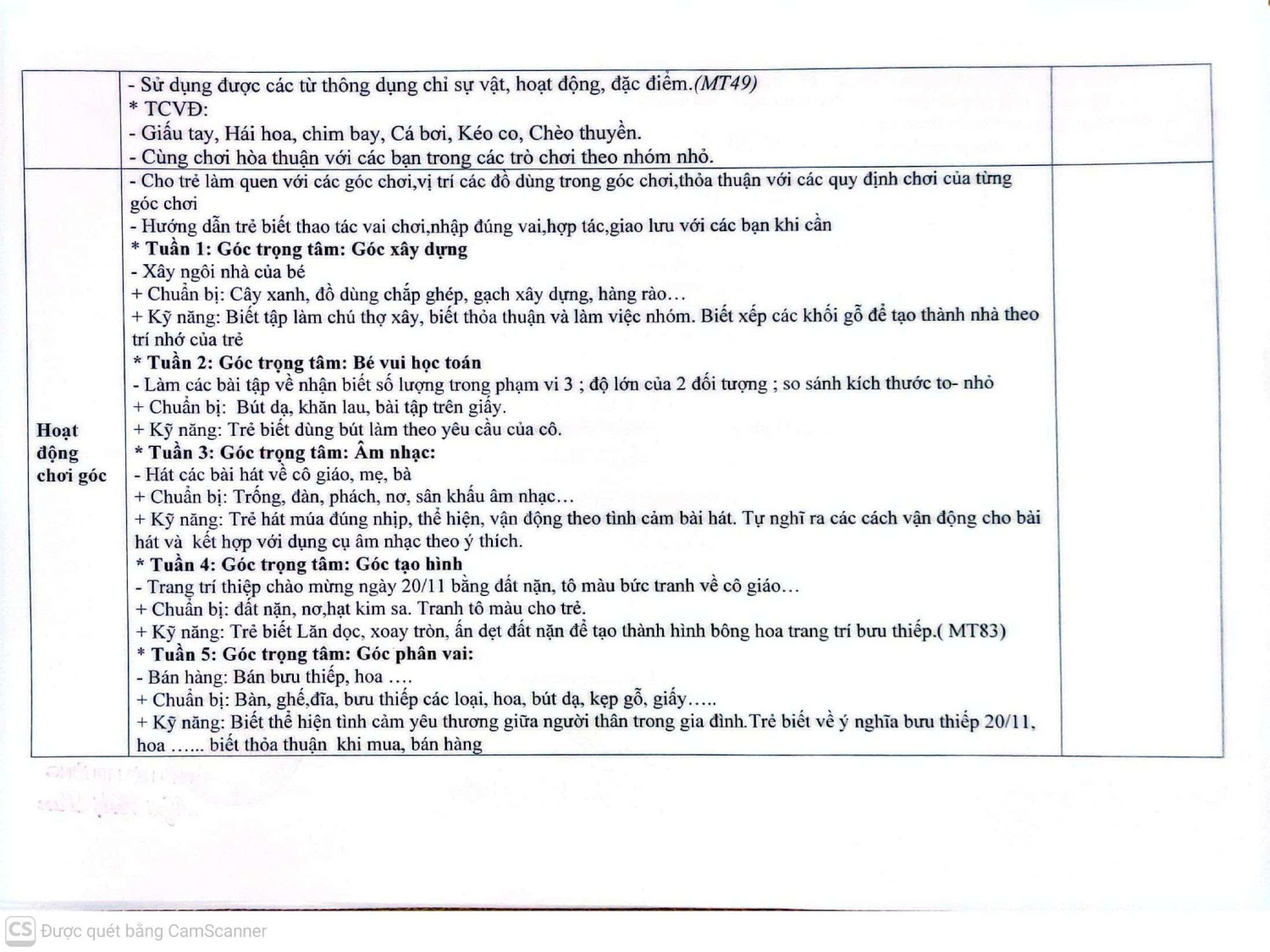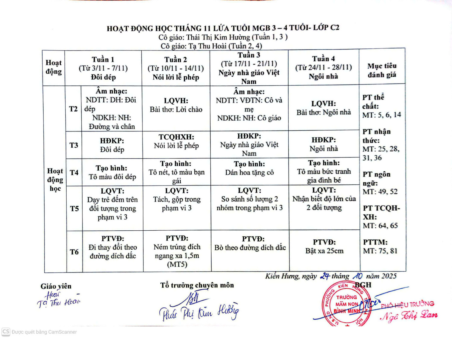 KHGD LỚP MGB C2 THÁNG 11