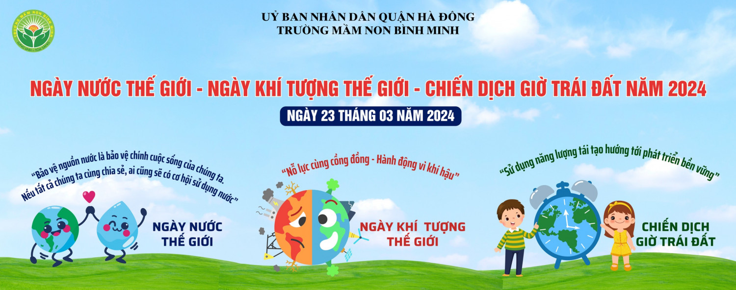 Trường mầm non Bình Minh xây dựng kế hoạch số 49/KH-MNBM ngày 18/3/2024 về việc hướng dẫn tổ chức các hoạt động hưởng ứng Ngày Nước thế giới, Ngày Khí tượng thế giới, Chiến dịch Giờ Trái đất năm 2024.