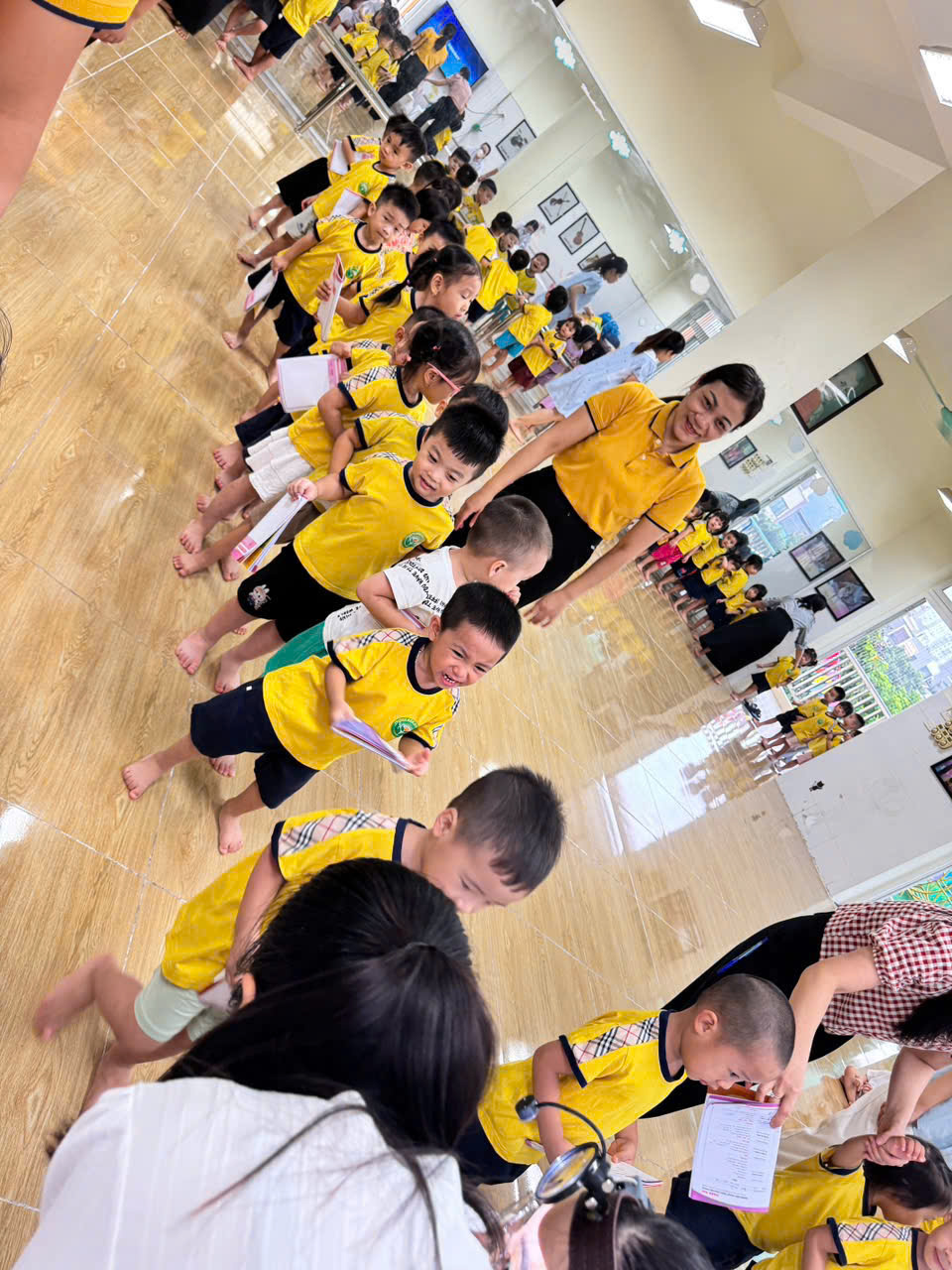 Các con lớp MGL xếp hàng ngày ngắn chờ tới lượt khám
