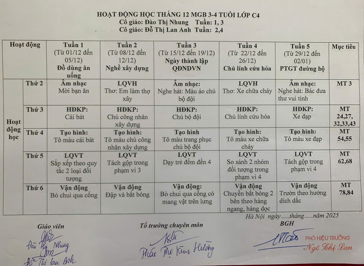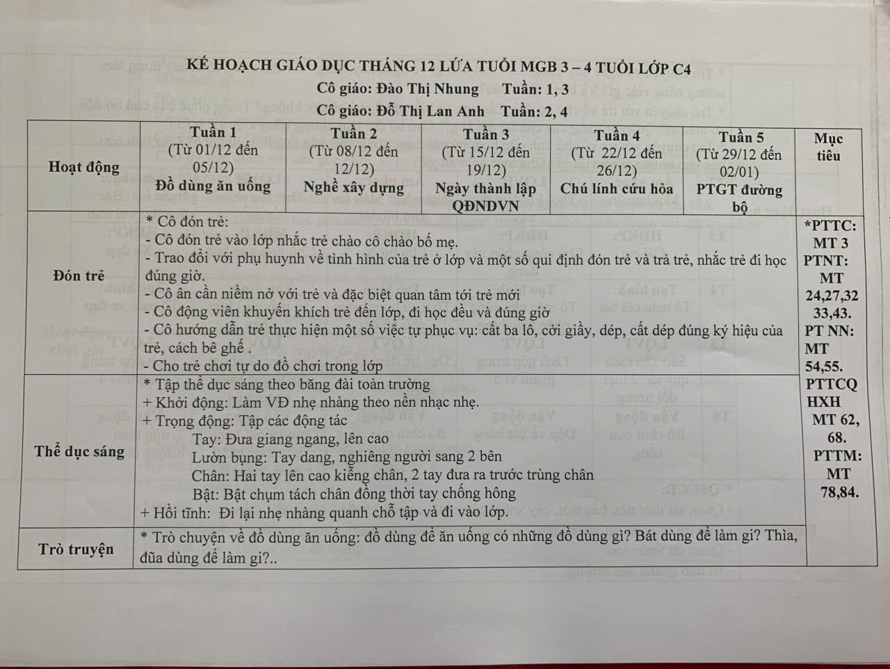 KẾ HOẠCH GIÁO DỤC THÁNG 12 LỚP C4
