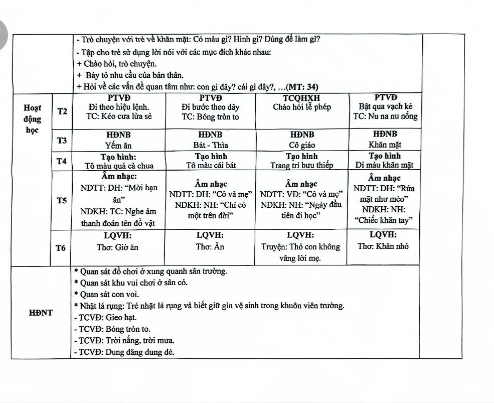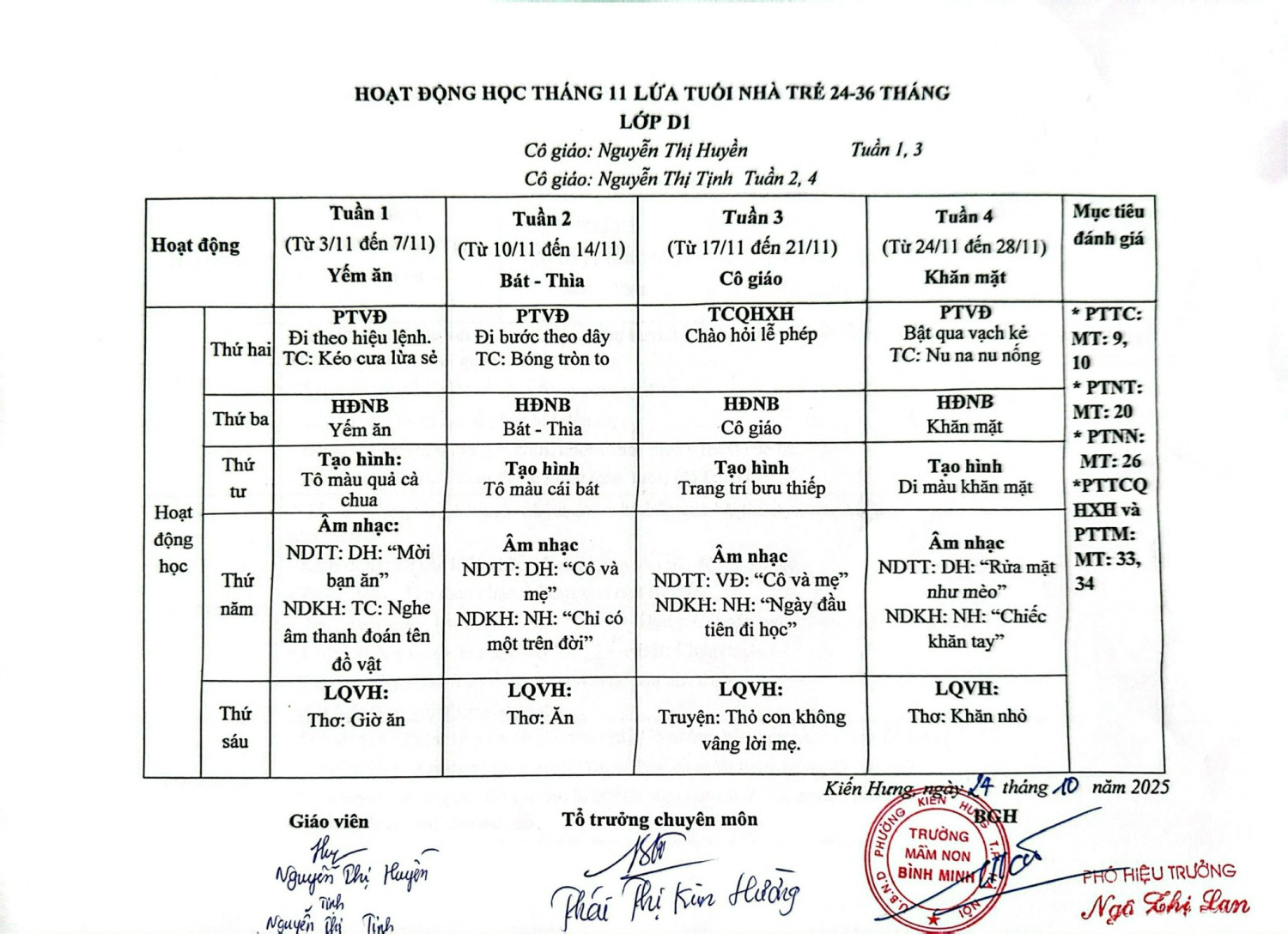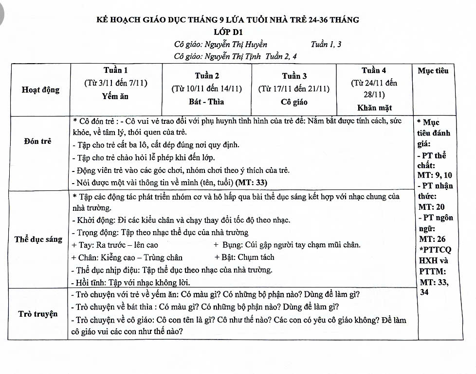 KẾ HOẠCH GIÁO DỤC THÁNG 11 LỚP D1