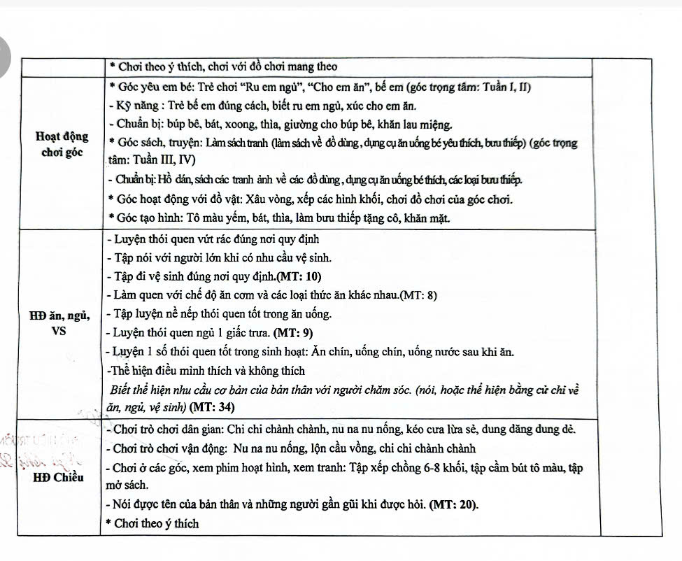 Kế hoạch giáo dục tháng 11 lớp Nhà trẻ D1
