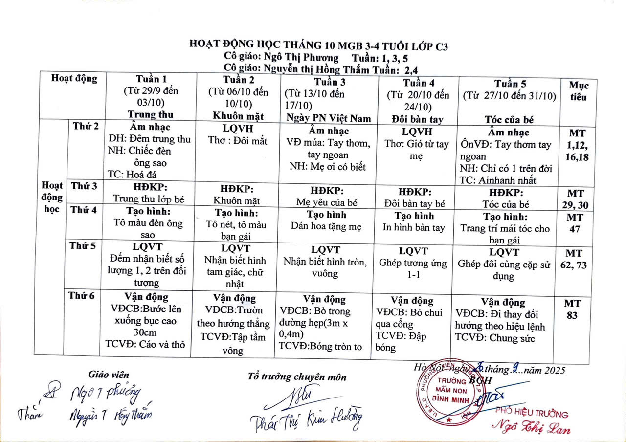 KHGD tháng 10/2025 MGB lớp C3
